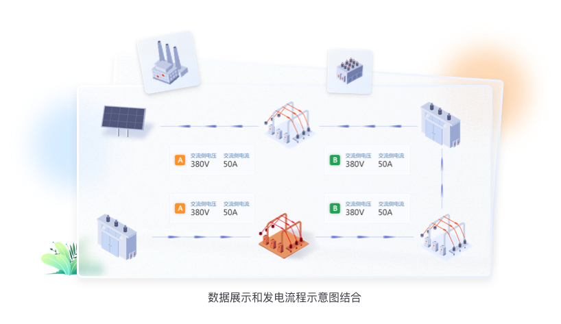 逆變器視圖界面需求變更比較大,圍繞逆變器這一核心部件,增加很多前后環(huán)節(jié)中實時數(shù)據(jù)信息,但展示本質(zhì)并未發(fā)生變化。