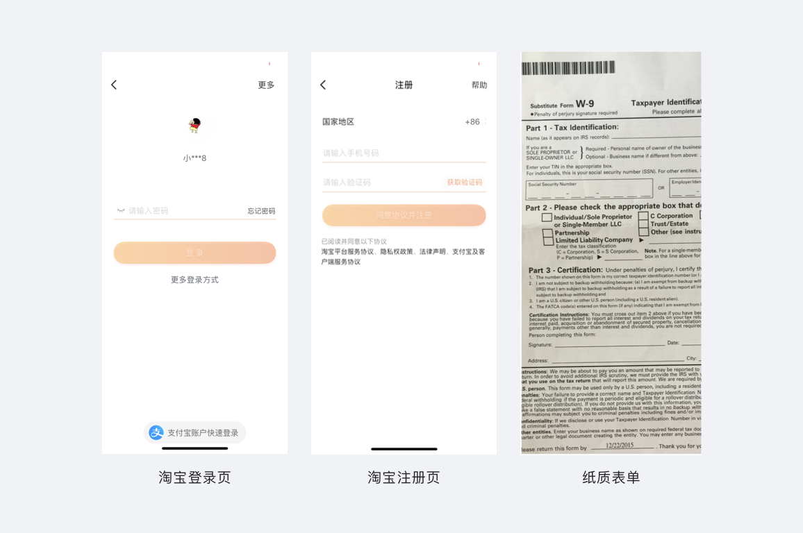 表單在我們的工作生活中非常見,表單對于企業和個人同樣至關重要,當涉及到數據收集時,我們大多數情況下會采用表單。比如,我們在出國申請護照的時候,我們需要填寫的紙質的申請資料,就是表單。我們在淘寶京東下單買東西時填寫的個人信息,地址的時候,也是表單。表單有數據收集,校驗和提交的功能,其中核心功能是采集數據信息,可以看成是采集、傳遞、提交數據的中間媒介。表其作為獲取用戶輸入的重要交互方式,也承擔著將問題和答案進行配對的角色。包含復選框,單選框,輸入框,下拉選擇框等元素。