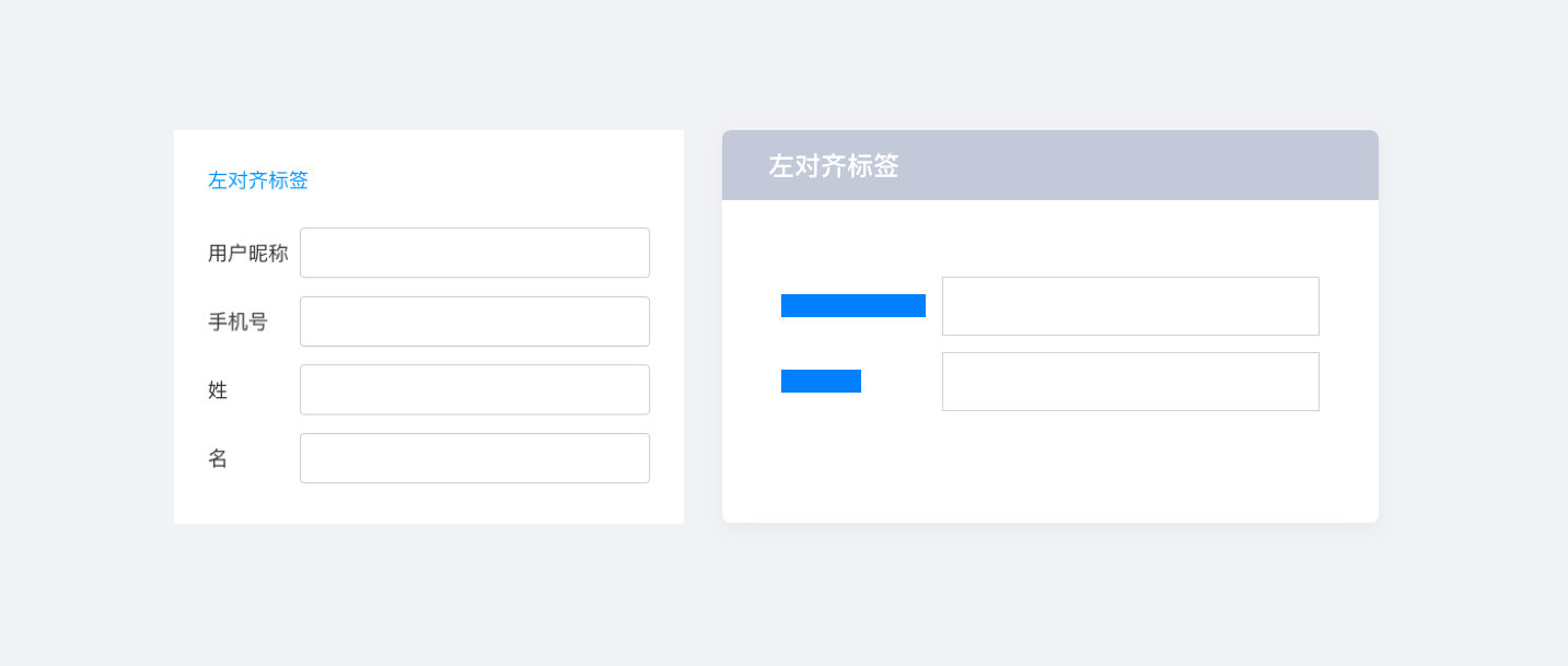 左對齊標簽使用場景:需要用戶謹慎填寫的情況下推薦使用左側對齊標簽。