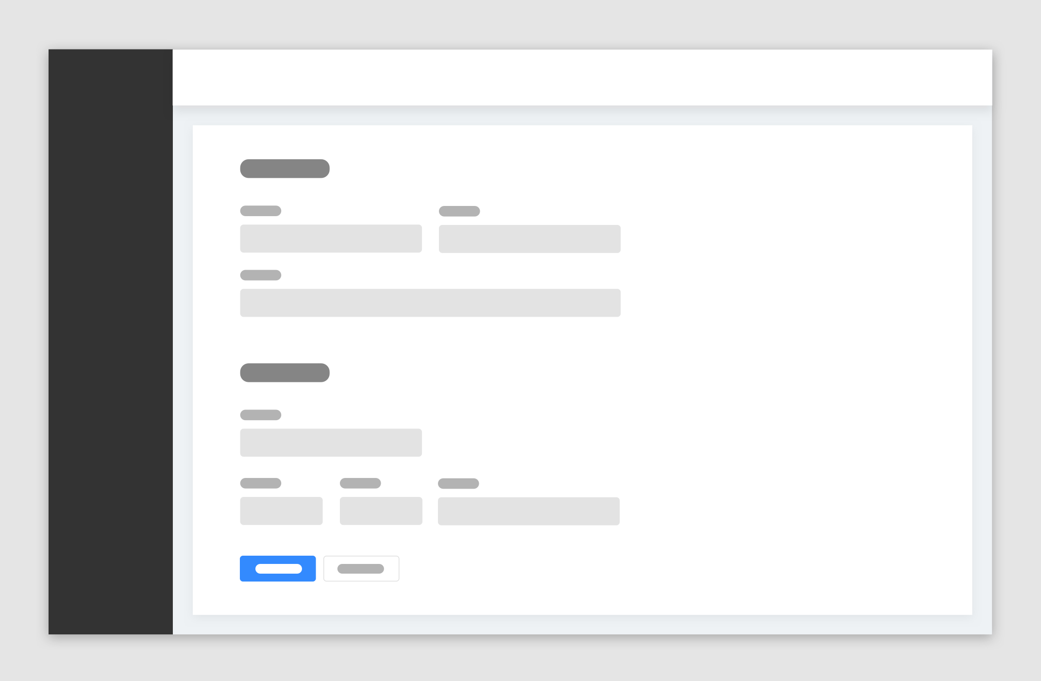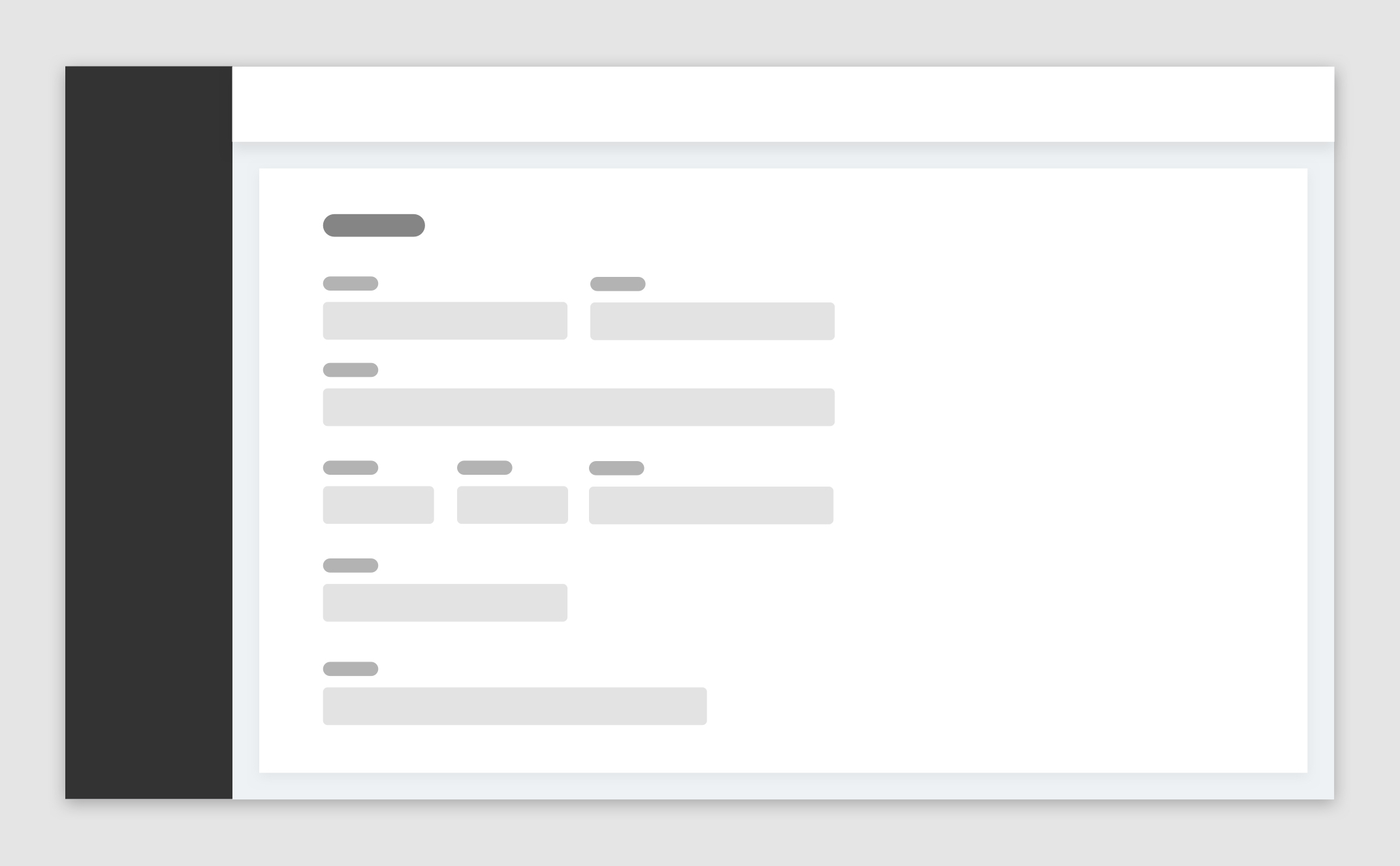表單含有較多填寫(xiě)字段的復(fù)雜表單,可將具有相關(guān)聯(lián)字段進(jìn)行分類(lèi)并以標(biāo)題區(qū)分的形式進(jìn)行字段分組,并且表單字段都在一個(gè)卡片區(qū)域內(nèi)。