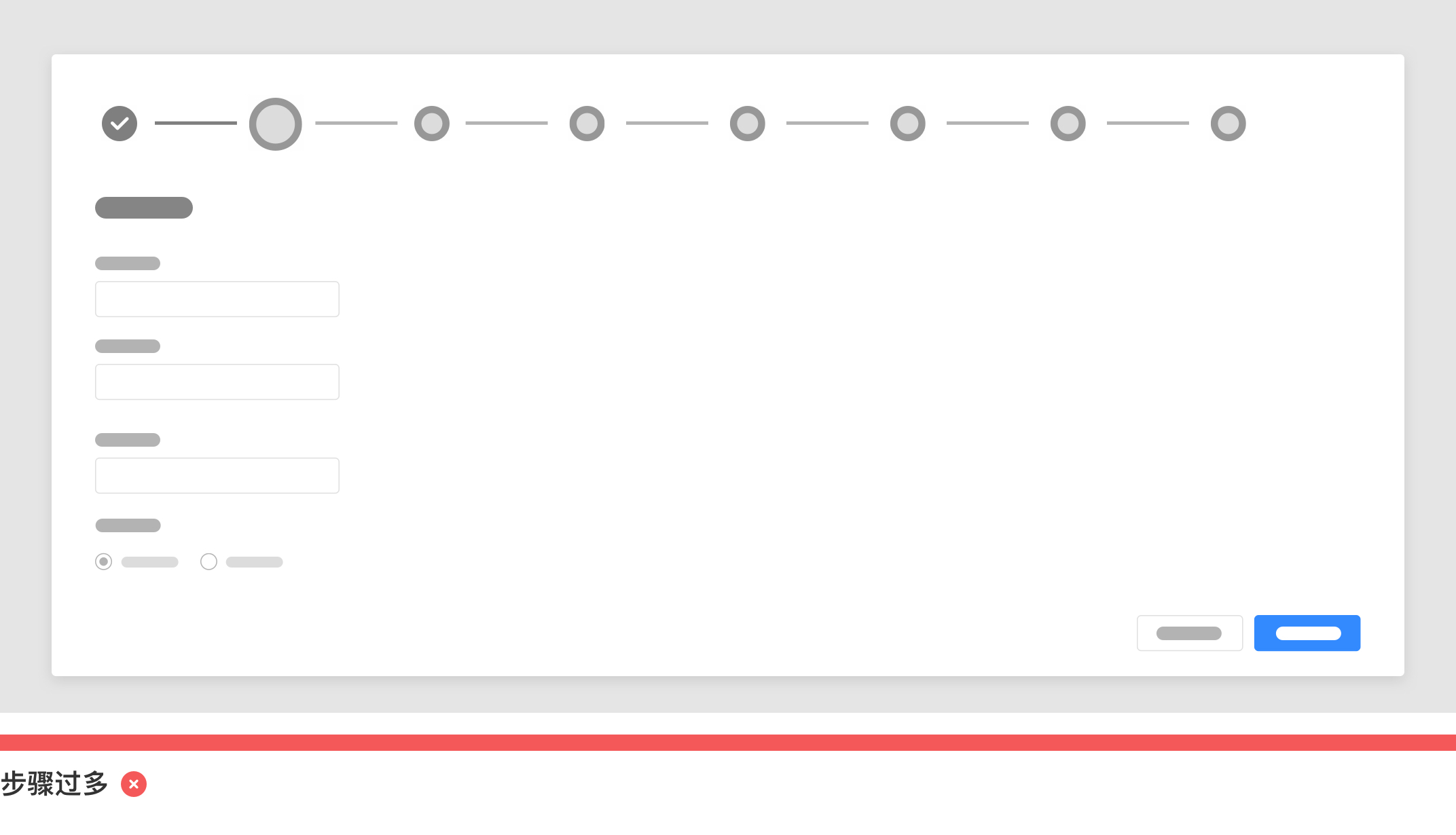 但是設(shè)計(jì)師需要注意的是不要太過(guò)于細(xì)化步驟以及在小型彈出窗出現(xiàn)過(guò)多的步驟,過(guò)多的步驟不利與用戶(hù)填寫(xiě)和記憶,反而增加用戶(hù)負(fù)擔(dān)。