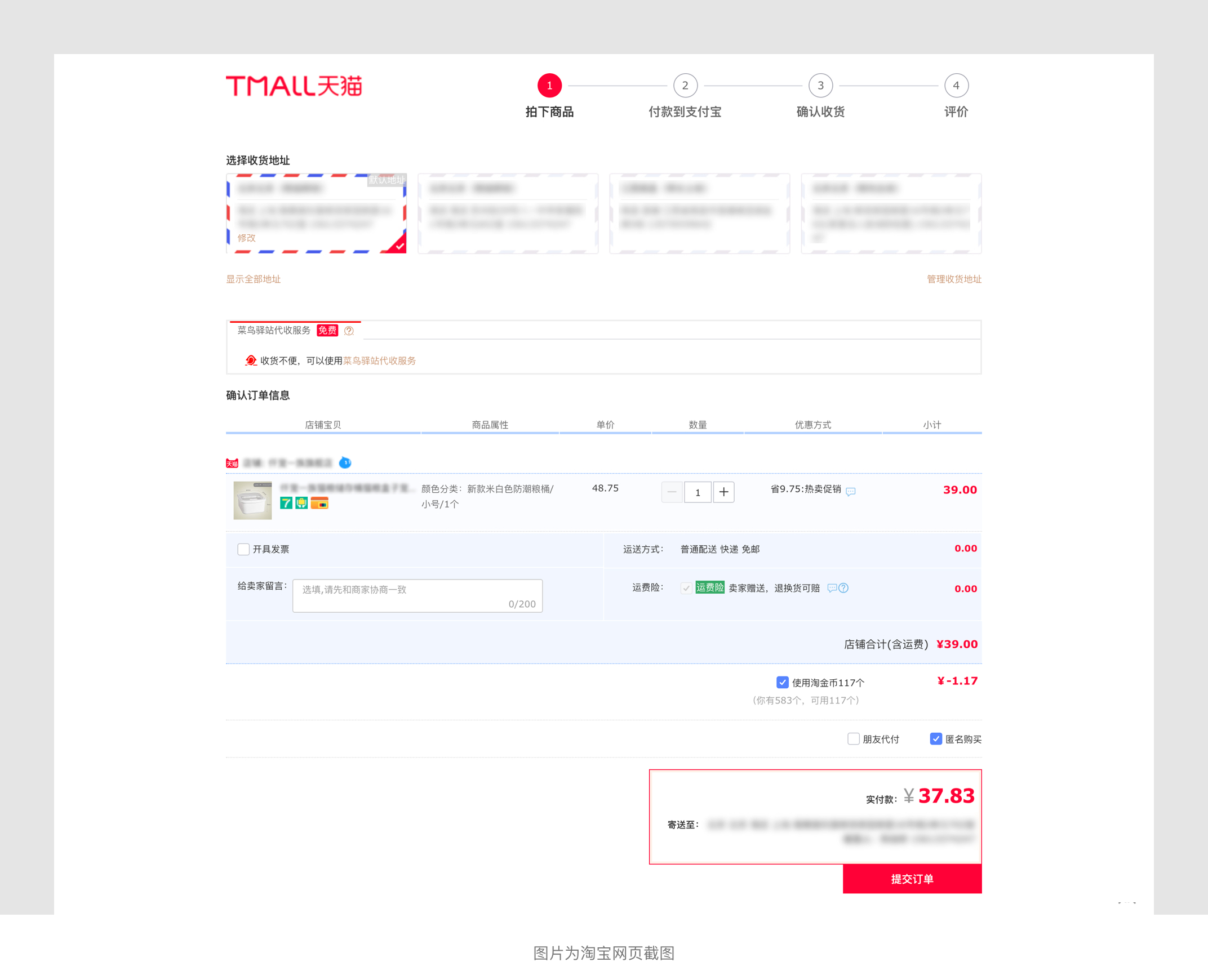 我們以淘寶來(lái)舉個(gè)典型的例子,淘寶屬于國(guó)民電商平臺(tái)也是亞洲較大的網(wǎng)上交易平臺(tái),提供各類(lèi)優(yōu)質(zhì)商品。從平臺(tái)的特性來(lái)講,它以用戶(hù)下單并成交作為最終目標(biāo)。其中支付表單起著一個(gè)關(guān)鍵的作用,用戶(hù)從購(gòu)買(mǎi)到支付完成以分步形式進(jìn)行,第一步填寫(xiě)基本信息并提交訂單,第二步選擇商品并選擇支付貨款至第三方,第三步買(mǎi)方確認(rèn)收貨并自動(dòng)打款給商家,第四步完成訂單并評(píng)價(jià)。在填寫(xiě)表單時(shí)中間沒(méi)任何阻斷,用戶(hù)能很順利的按步驟完成訂單。淘寶支付表單屬于比較典型的分步表單。