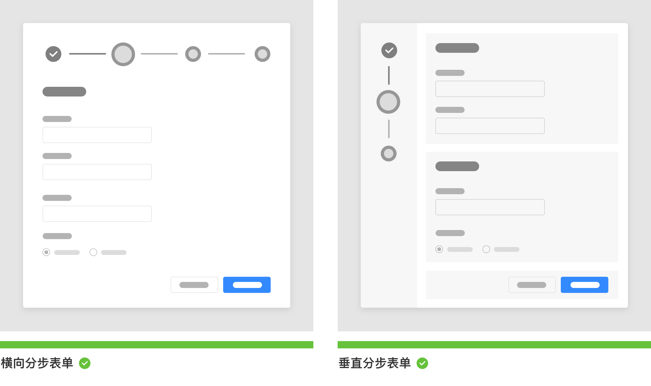 在設(shè)計(jì)師設(shè)計(jì)表單時(shí)可能業(yè)務(wù)場(chǎng)景復(fù)雜、字段較多,即使設(shè)計(jì)師把很多不必要的字段都刪除也解決不了根本問(wèn)題。所以,這時(shí)候設(shè)計(jì)師需要將大型任務(wù)分解為一系列較小的任務(wù),使得表單更加的簡(jiǎn)潔。這種方式的好處是能將步驟以視覺(jué)的方式傳達(dá)給用戶(hù)數(shù)量、名稱(chēng)、說(shuō)明等信息,更加提高用戶(hù)滿(mǎn)意度并且能激勵(lì)繼續(xù)填寫(xiě)。