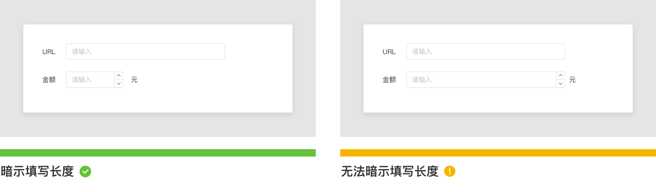 幫助信息:當(dāng)表單標(biāo)簽不足以對(duì)輸入項(xiàng)準(zhǔn)確說(shuō)明時(shí),這時(shí)候需要使用文本提示用戶(hù)。它不僅能讓用戶(hù)提前感知輸入后的樣式,還能夠有效的告訴用戶(hù)該如何輸入以及表單提交后達(dá)到的目的。