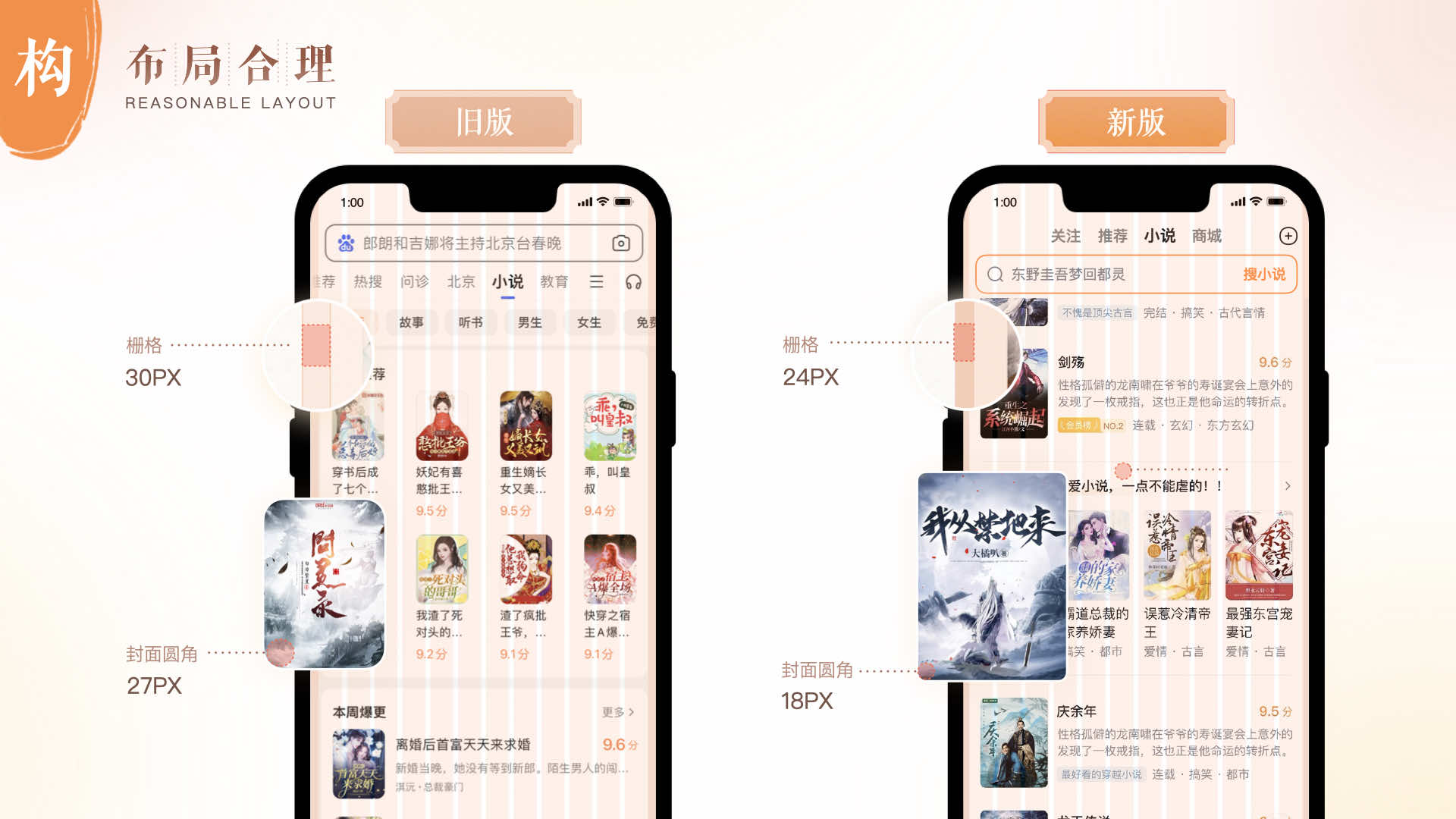 鑒于此次設計改版背景,小說設計團隊提出了人文感的設計理念,貫穿在本次改版的內容中。
