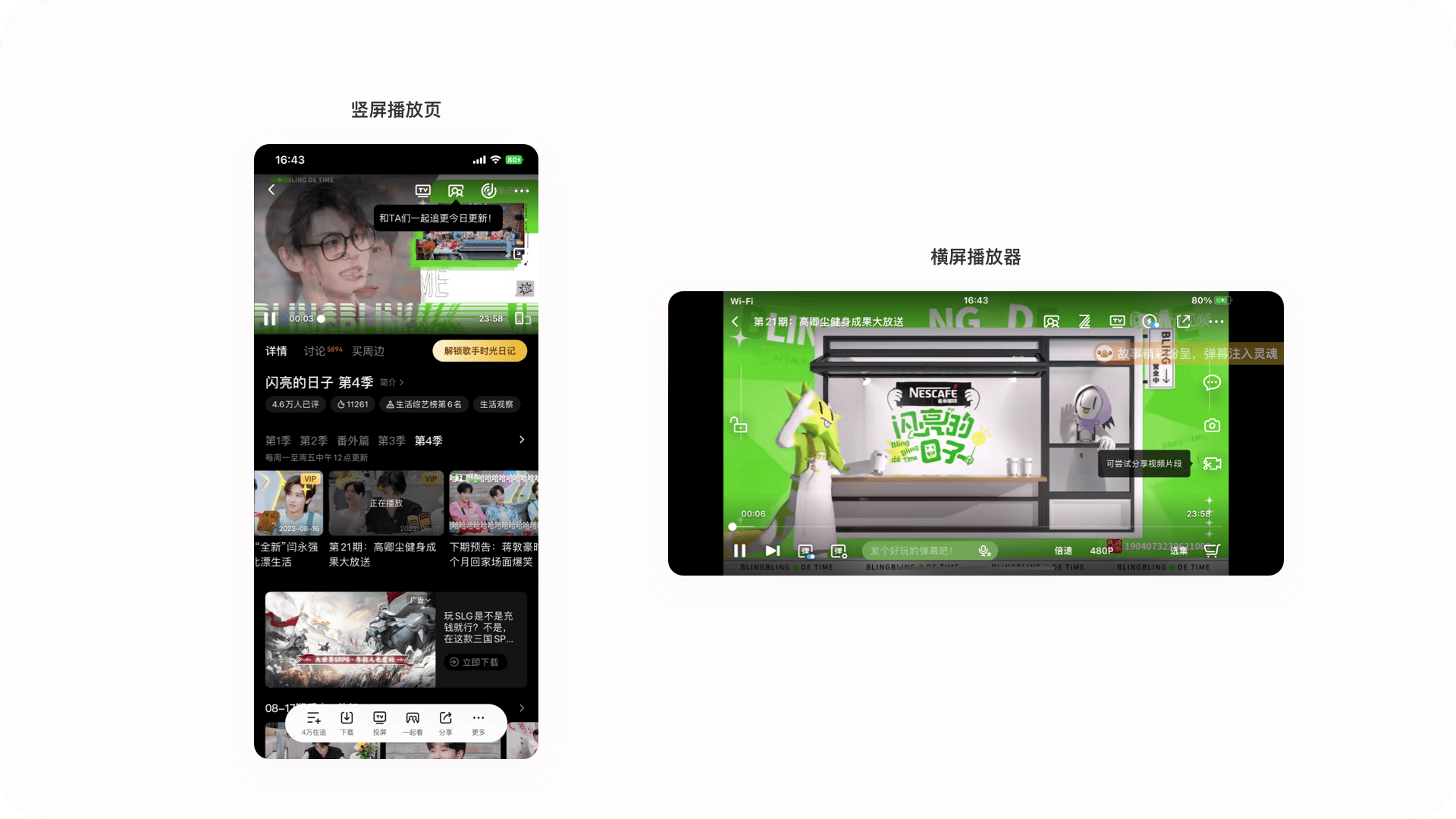 3.播放器相關播放器作為視頻產品的核心使用場景,其中的功能非常龐大,騰訊視頻的播放器內容主要分為:豎屏播放頁與橫屏播放器