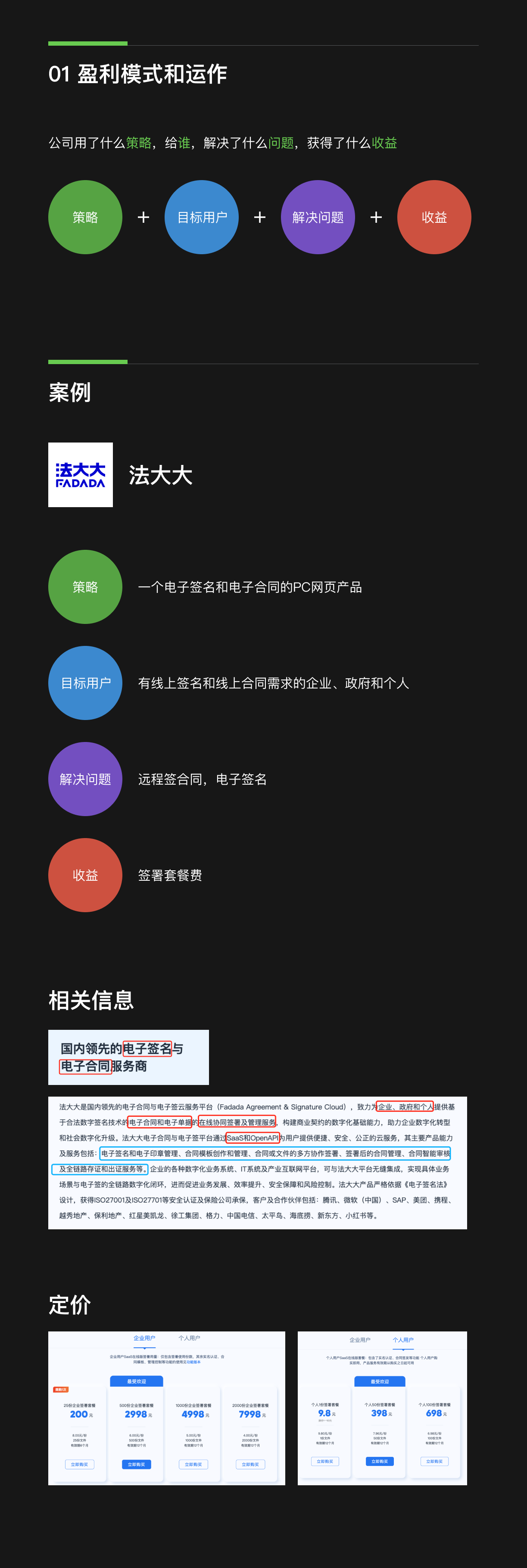 到此先做個小結:① 了解公司盈利和運作的公式:公司用了什么策略,給誰,解決了什么問題,獲得了什么收益