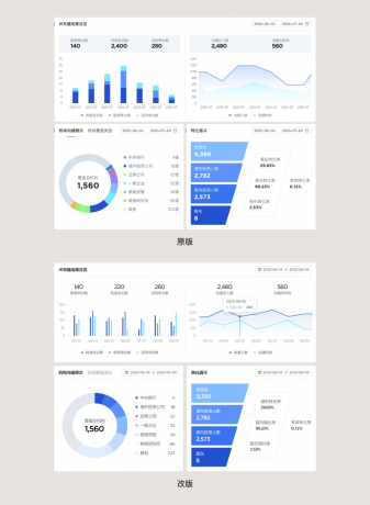 但重要不代表需要過度傾注和堆疊視覺元素,過度的設(shè)計(jì)會(huì)讓界面看起來有 “飛機(jī)” 敢,不僅不真實(shí)的印象產(chǎn)生了,還會(huì)顯得業(yè)余不夠自信。同時(shí)任何項(xiàng)目中表盤頁過度設(shè)計(jì)都會(huì)對(duì)整個(gè)項(xiàng)目造成負(fù)擔(dān),后續(xù)的頁面要怎么設(shè)計(jì)才能不和它產(chǎn)生隔閡,保持一致性。