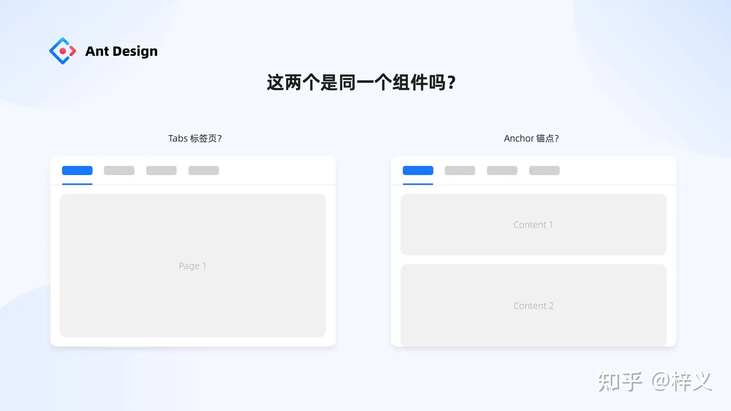 第一個問題,有兩個組件,左邊用來控制頁面間切換,右邊用來定位頁面內內容,它們在樣式上一模一樣,請問,在設計系統里應將它們歸為一類組件嗎?