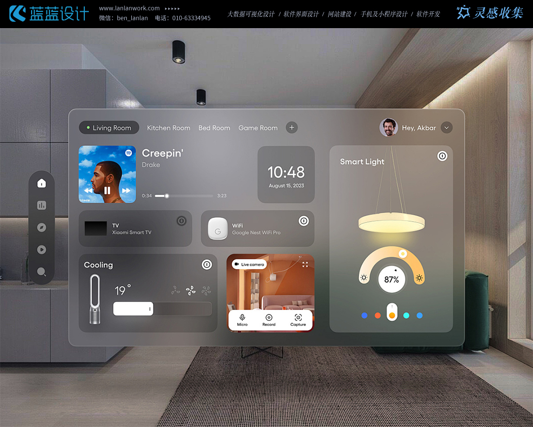在智能家居領域,大屏UI設計成為了家庭控制中心的核心界面。通過智能大屏,用戶可以輕松實現對家中各種智能設備的控制和管理。大屏UI設計不僅提供了直觀的操作界面,更通過豐富的視覺元素和動畫效果,提升了用戶的交互體驗。用戶只需輕觸屏幕,就能完成燈光調節、窗簾開關、家電控制等操作,讓生活變得更加便捷和智能。
