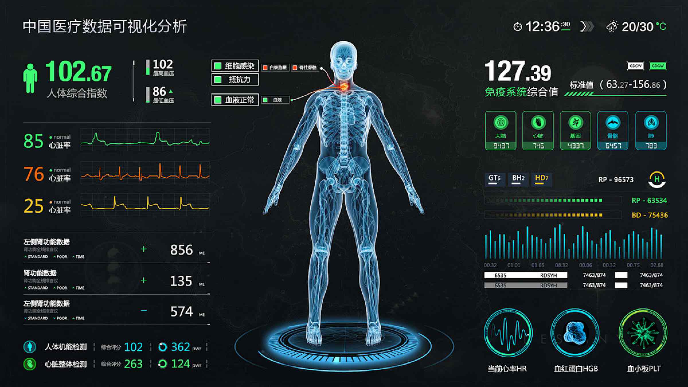 醫療數據來源廣泛且復雜多樣,涵蓋醫院信息系統(HIS)中的患者基本信息、電子病歷系統(EMR)里的詳細診療記錄、醫學影像存儲與傳輸系統(PACS)的影像資料,以及各類醫療物聯網設備實時采集的生命體征數據等。構建可視化醫療大屏 UI 架構的第一步,便是打造強大的底層數據整合層。通過專業的數據網關與中間件,運用 ETL 技術,將這些分散、異構的數據進行匯聚、清洗與標準化轉換。例如,將不同設備采集的心率數據統一格式,去除重復或錯誤錄入的患者病歷信息,確保數據的準確性與一致性,為上層可視化展示筑牢根基。