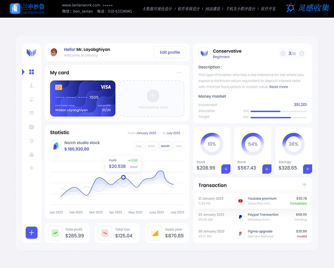 蘭亭妙微(m.xintaizi.com )是一家專注而深入的界面設計公司,為期望卓越的國內外企業提供卓越的大數據可視化界面設計、B端界面設計、桌面端界面設計、APP界面設計、圖標定制、用戶體驗設計、交互設計、UI咨詢、高端網站設計、平面設計,以及相關的軟件開發服務,咨詢電話:01063334945。我們建立了一個微信群,每天分享國內外優秀的設計,有興趣請加入一起學習成長,咨詢及進群請加藍小助微信ben_lanlan