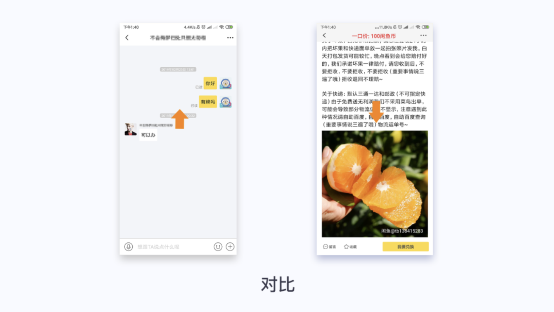 閑魚的兌換詳情頁面,文字和信息的對比,突出展示內容信息,讓用戶一目了然區分內容和圖片,多重信息對比,也增加了信息獲取的質量,提升用戶體驗。