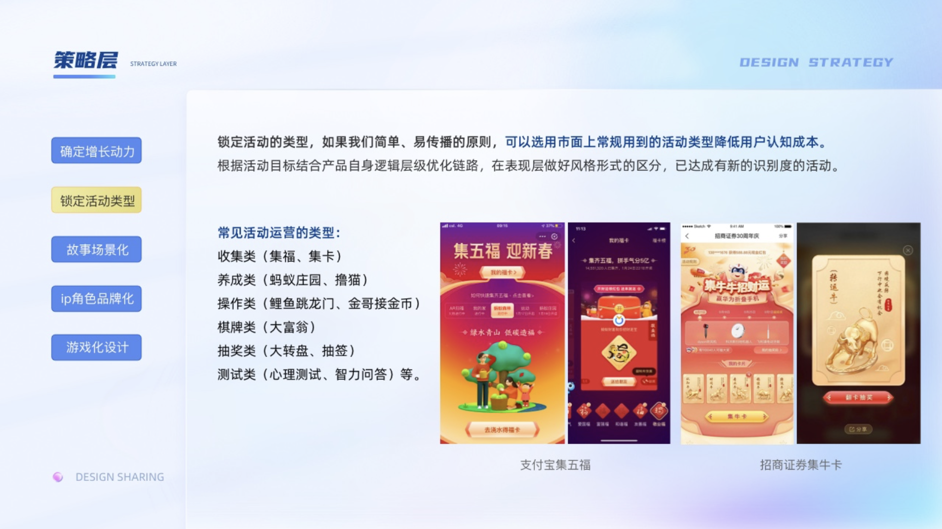策略層:1、確定增長動力;2、鎖定活動類型;3、故事場景化;4、IP角色品牌化;5、游戲化設計