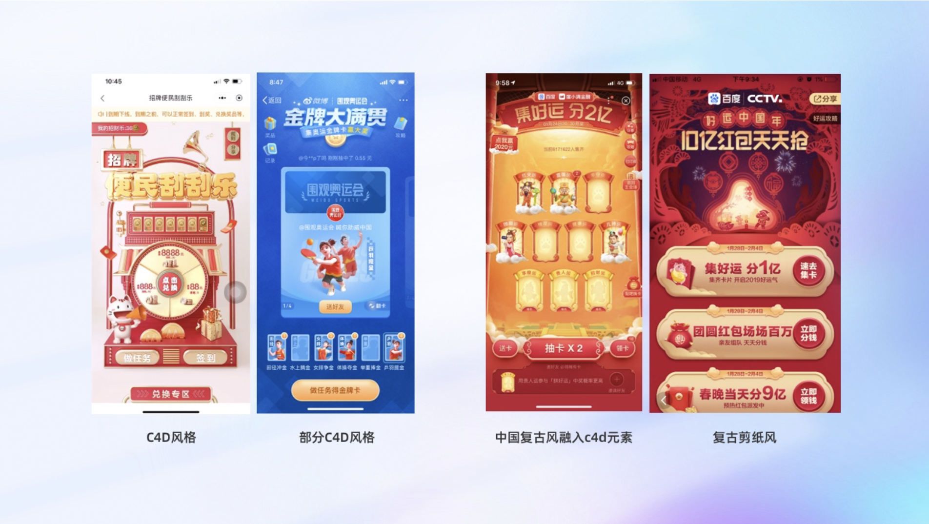 結合實際風格還有一個維度可以對風格進去區分就是時間維度。首先設計師應該把握最新的設計趨勢。比如在扁平風格流行了很長一段時間,現在慢慢又開始進入立體的風格,尤其是C4D的使用,使得3d風格又風靡設計界。把握潮流趨勢的一般都是當下流程的設計風格,在特定主體下我還是可以追溯時間線,做一些復古風的設計。復古風分中西方,也分具體的歷史時間節點,可以根據主題選擇。