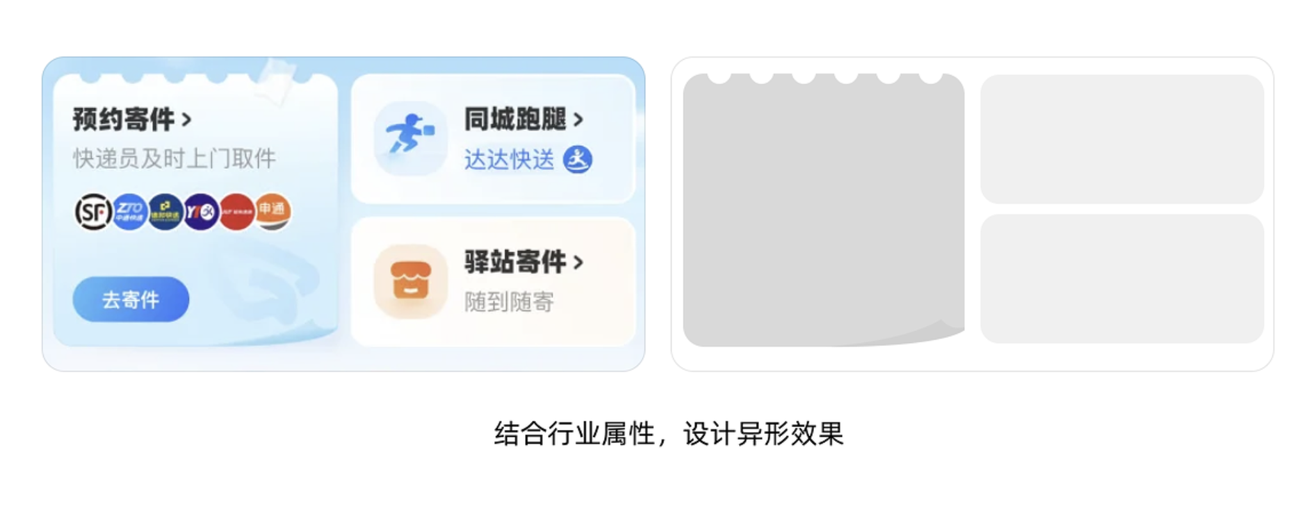 我們也可以結合行業屬性設計特殊的異形效果,例如為快遞行業設計出郵票的異形效果: