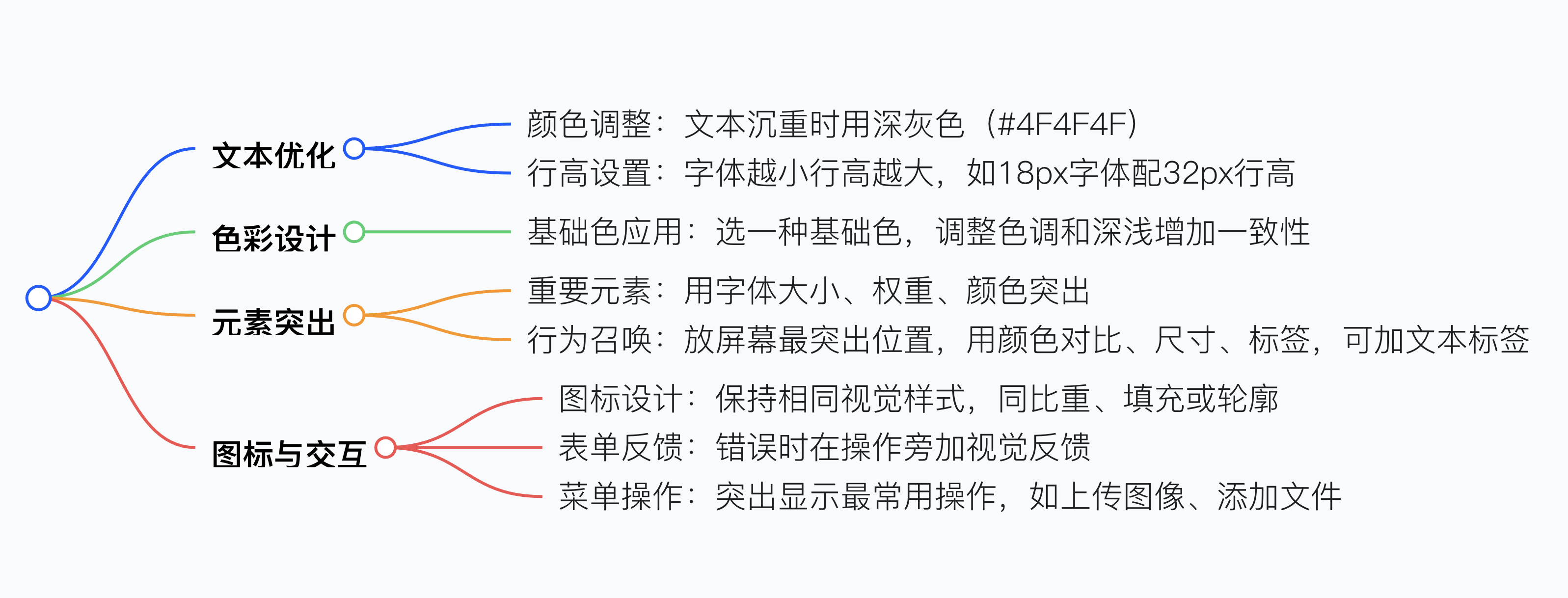 • 答案:可將文本顏色改為深灰色(如 #4F4F4F),這種顏色調整能使文字更容易被識別,有效減輕大面積深色粗體字帶來的沉重感。