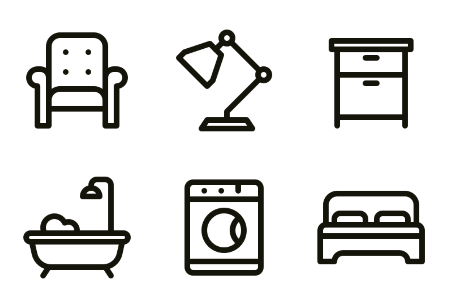 • 圖標角度統一(如家具圖標均為斜 45°),線性與填充圖標不混用(可用于狀態區分,如填充表示當前態)。