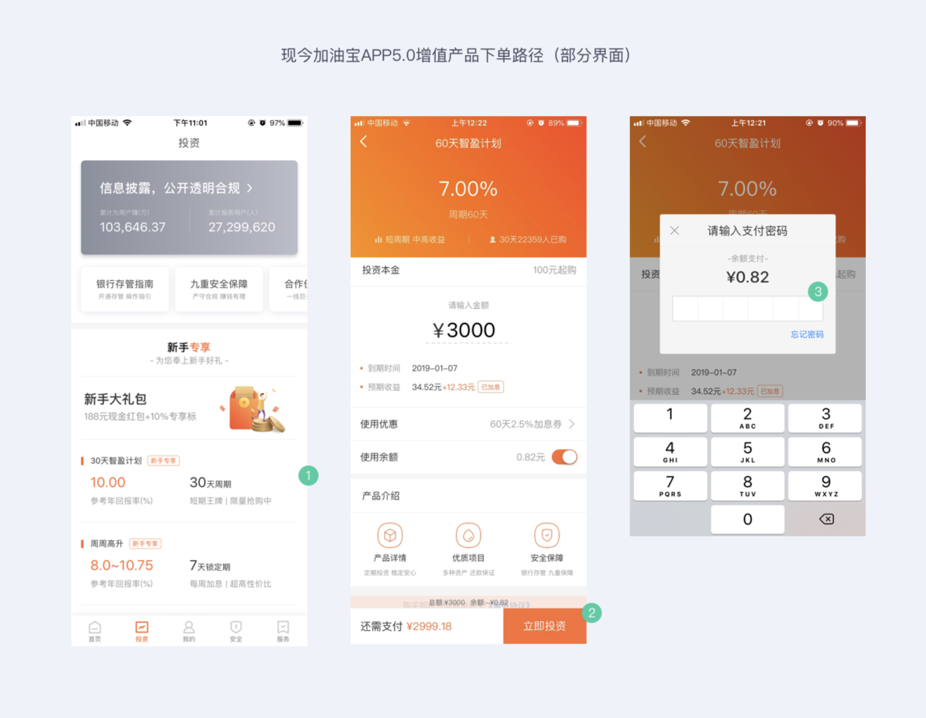 • 提升支付確認率:在數字鍵盤旁強調「安全加密」,重復平臺歷史兌付率 100%、銀行存管等安全保障。