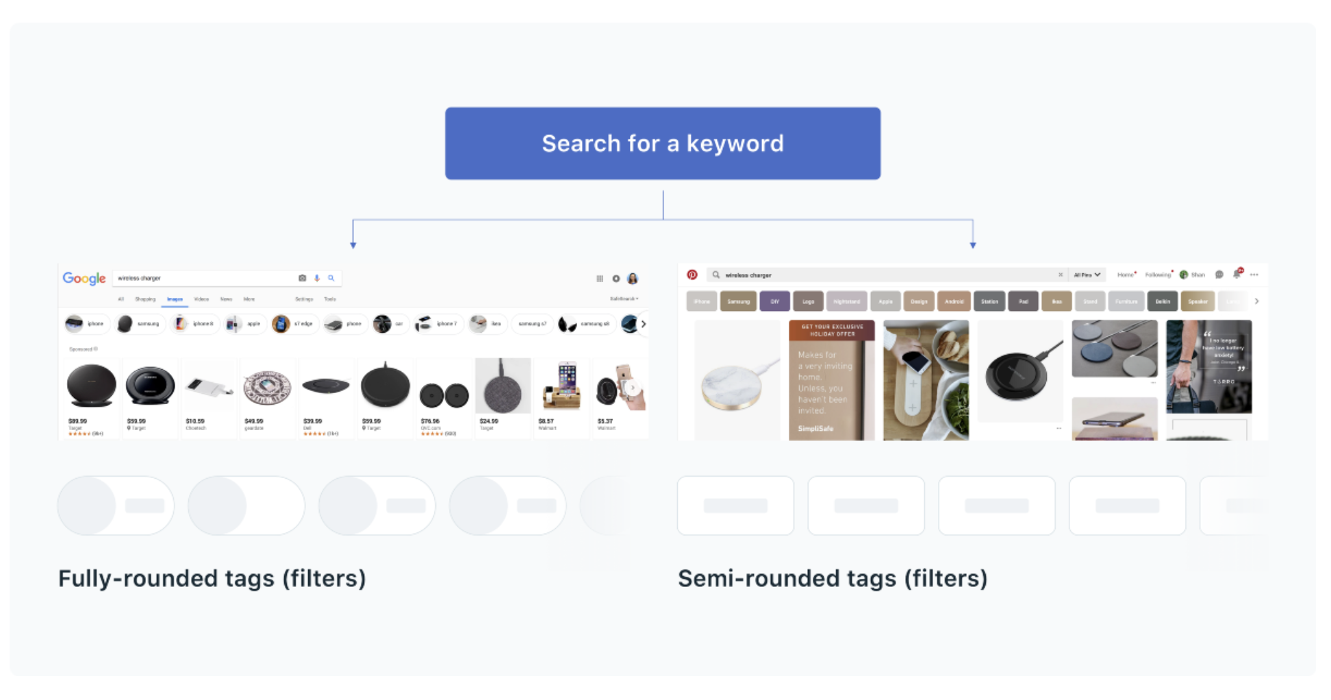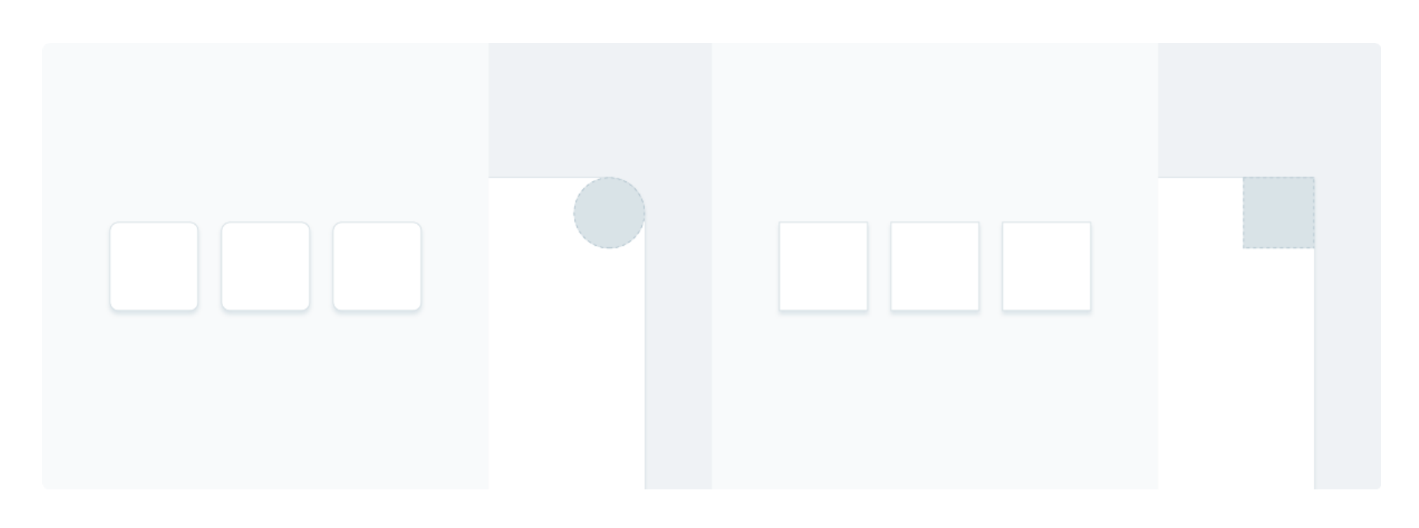 • 答案:圓角在 UI 設計中具有更高的辨識性,在網格布局中,其卡片角落的可辨別邊緣能引導眼睛識別視覺差異,使用戶更容易計算卡片總數;在美學上,圓角傳達出現代、簡約、樂觀和開放的感覺,符合許多設計系統的風格需求。