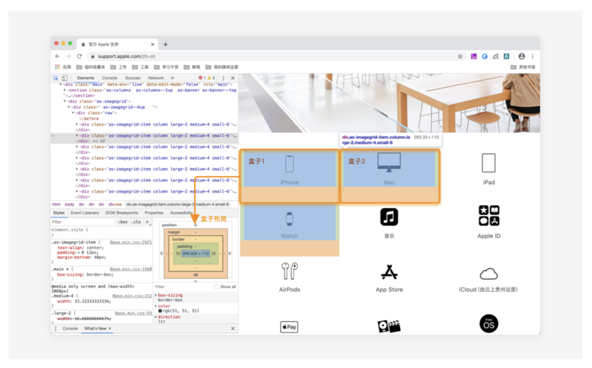 1. 定義:界面中每個元素視為矩形盒子,有樣式屬性(邊距、描邊、填充等)和與其他盒子的位置關(guān)系(上下左右及包含關(guān)系),前端通過代碼將元素裝進盒子再定位。