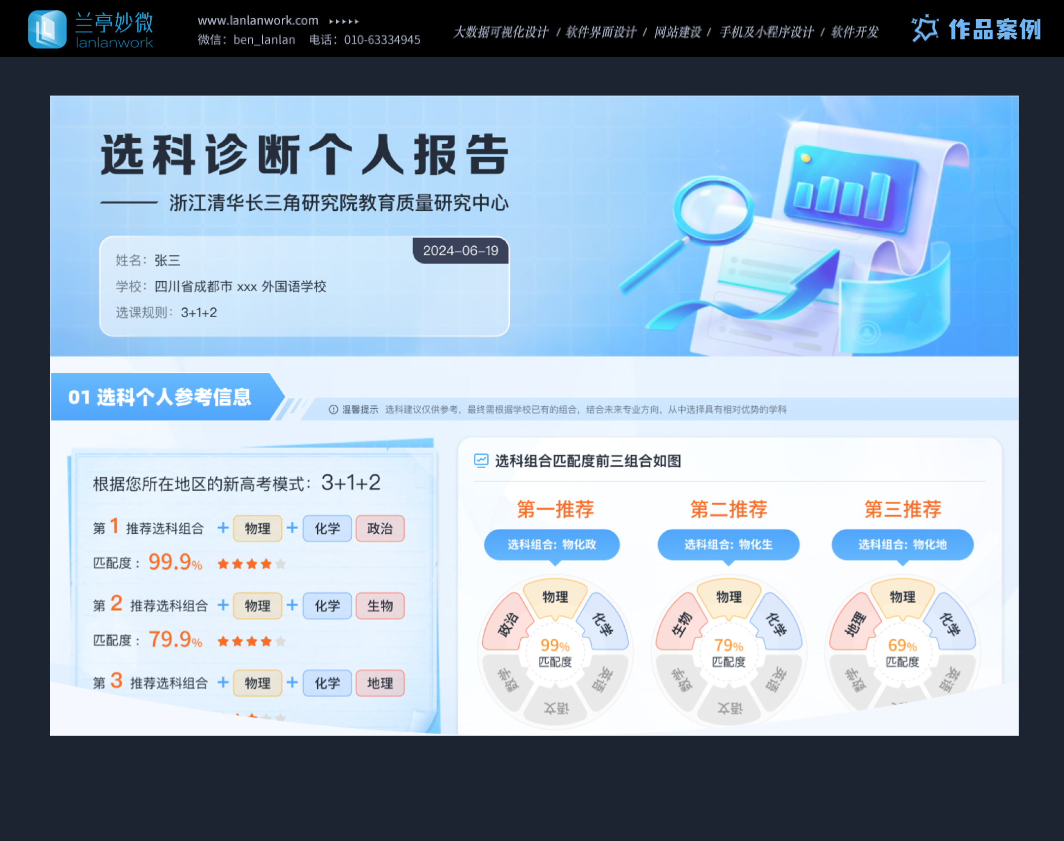 這是一款專注于為高中生提供精準、高效、個性化選科決策輔助的在線系統。通過整合多維度數據資源和運用智能算法,將復雜的選科信息以直觀、簡潔、易懂的交互界面呈現給用戶。