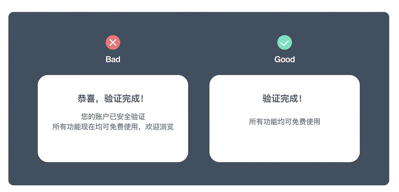 - 減字數:去掉不必要的形容詞和解釋。比如注冊成功提示,“恭喜您!注冊流程已全部完成,您的賬戶現在可以正常使用所有功能啦”,可簡化為 “注冊成功!所有功能已解鎖”,信息沒丟,讀起來更輕松。