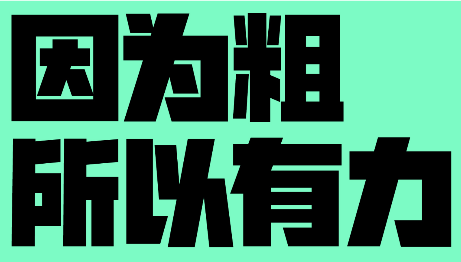 在平面設計、品牌宣傳、活動海報等場景中,大標題往往是視覺焦點,而一款自帶力量感的粗黑字體,能瞬間抓住觀眾眼球,強化信息傳遞的沖擊力。筆畫厚重、結構扎實的粗黑字體,不僅能清晰劃分畫面層次,還能通過視覺重量感傳遞自信、堅定的品牌調性,甚至放大后可作為圖形元素豐富設計表達。