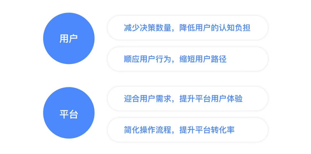 對用戶:預判設計幫助用戶減少做決策的數量,降低用戶的認知負擔,順應用戶行為進行預判,減少冗余步驟、縮短用戶路徑,節省用戶時間,以此來為用戶創造更愉悅輕松的體驗。