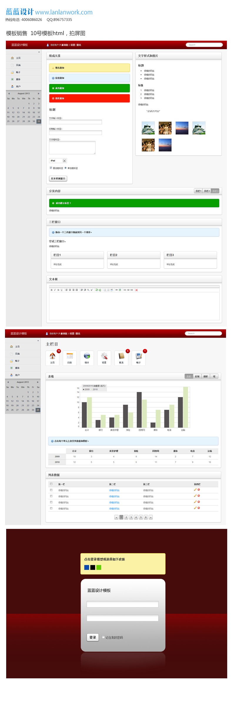 內容:包含列表頁、輸入頁、目錄頁共3頁html、images/css/div