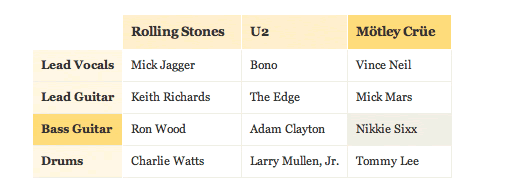 這種技術增加了復雜表格或矩陣的可讀性。無論用戶鼠標懸停到單元的列還是行,都會高亮突出整個單元。請見詳例 .