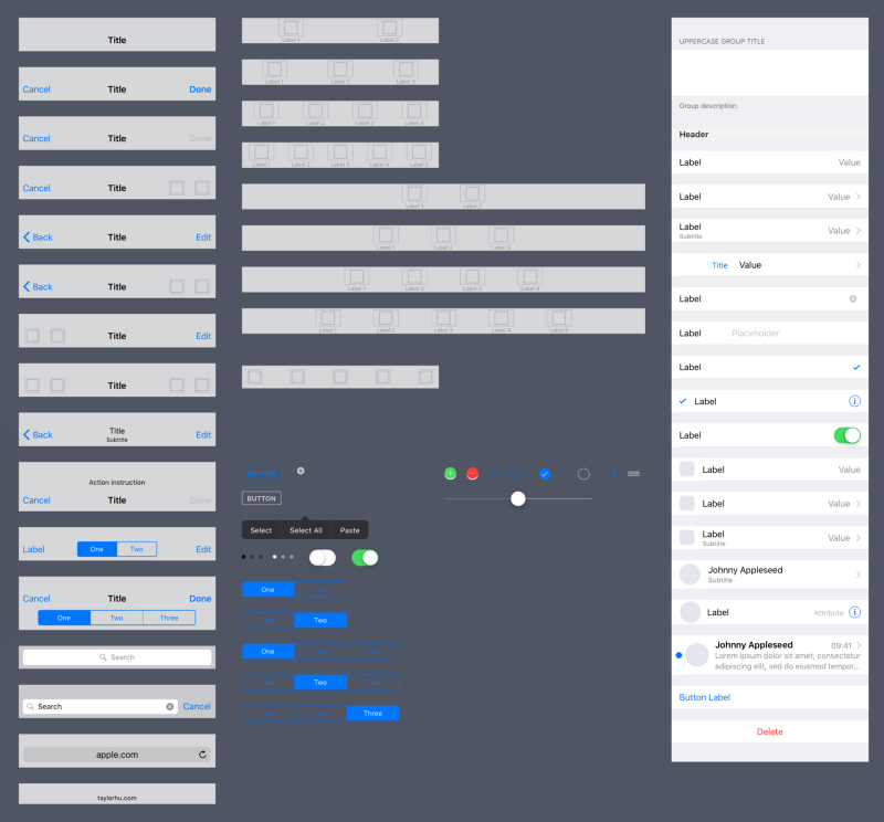 其中第二點是本節的重點,在你的 wireframe 里,應該使用系統原生的對象來構成畫面,例如這些東西: