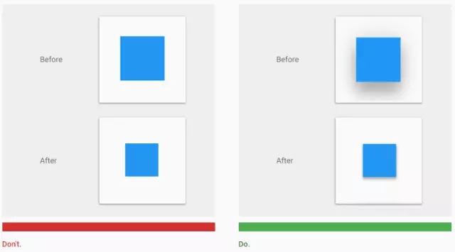 當(dāng)用戶無法確定控件或者元素是否可以點擊,或者是否已經(jīng)被點擊了,他們就越是需要點擊之后的反饋給予心理安慰。一個元素的高度變化應(yīng)該帶來相應(yīng)的陰影變化:
