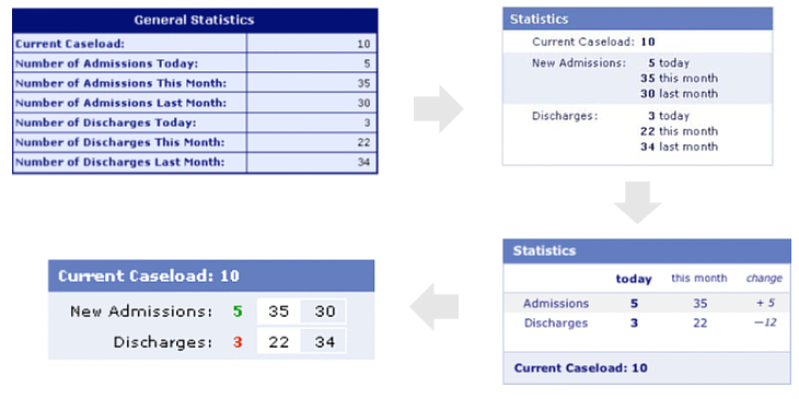 上圖是設計師對數據表格的優(yōu)化過程,第一版為簡單的信息羅列;去掉重復的文案后并將表格本身的設計弱化,突出內容本身,第二版相對清晰了很多;第三版繼續(xù)將重點進行加粗,改變排列方式可再次減少文案重復情況;第四版是該表格用戶調研過程中反映最好的版本,因為用戶會長期使用該表格來獲取數據,設計將非重點文案進行隱藏,用戶鼠標移上后才顯示該數據代表的含義,教育過一次后用戶再看這個表格就不再受眾多解釋文案的干擾,直接獲取想要的信息;一個看似簡單的表格,抓住重點信息,優(yōu)化空間還是很大的。