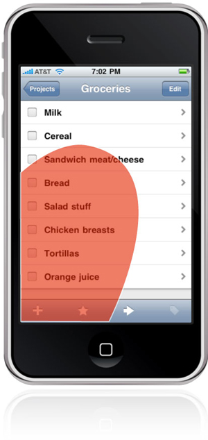 底部原則可以幫助我們對界面當中的可觸控元素進行更好的組織。最常用的功能按鍵應該被放在拇指最容易觸摸到的熱點區域當中,而其它相對次要或是比較敏感的控制元素則應該盡量避開這個區域。以iOS中的“編輯”按鈕來說,它通常被置于界面右上方,這個位置即可以保證它清晰可見,同時又不會被很容易的觸碰到,以免發生誤操作。