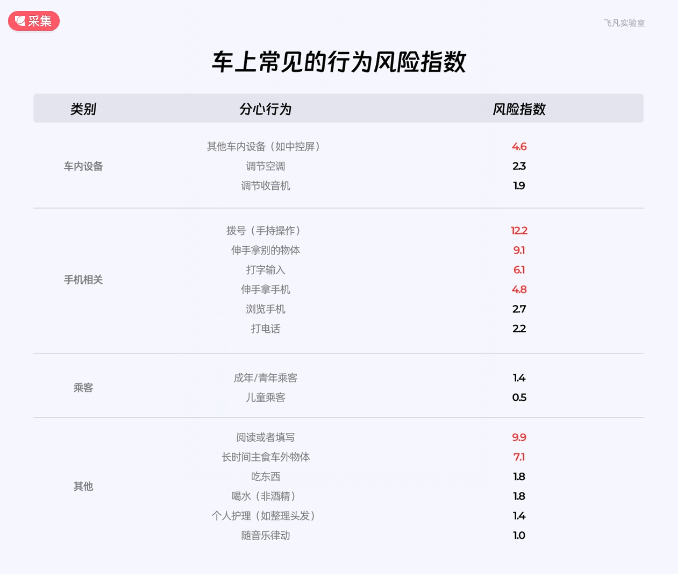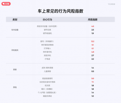 2、車上常見的行為風(fēng)險指數(shù)