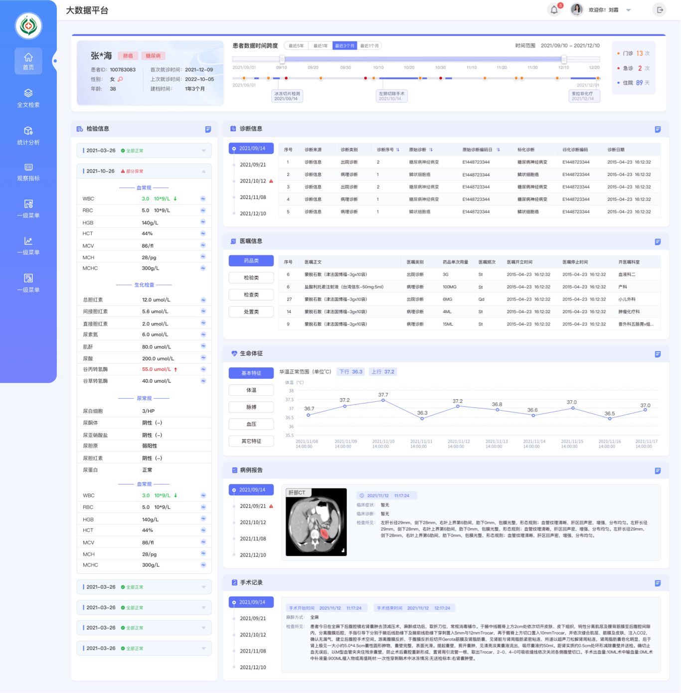 設計前期,藍藍設計在和客戶溝通時,客戶提出軟件目前交互體驗不友好,界面上沒有醫療相關元素,不能直觀的體現出醫療軟件等目前存在的問題,希望有使用更方便的交互設計方式,使軟件全新改觀。在設計過程中我們參考了國內外相關界面設計,用心理解業務,注重“顯而易懂”用戶體驗,操作簡易、流程簡便和患者舒心,并根據設計師的理解增加了一部分全局性的統計分析。